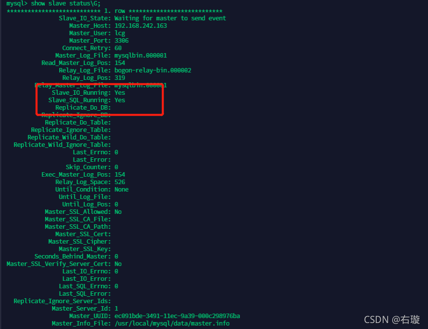 show slave status\G;#加上\G显示会比较友好
