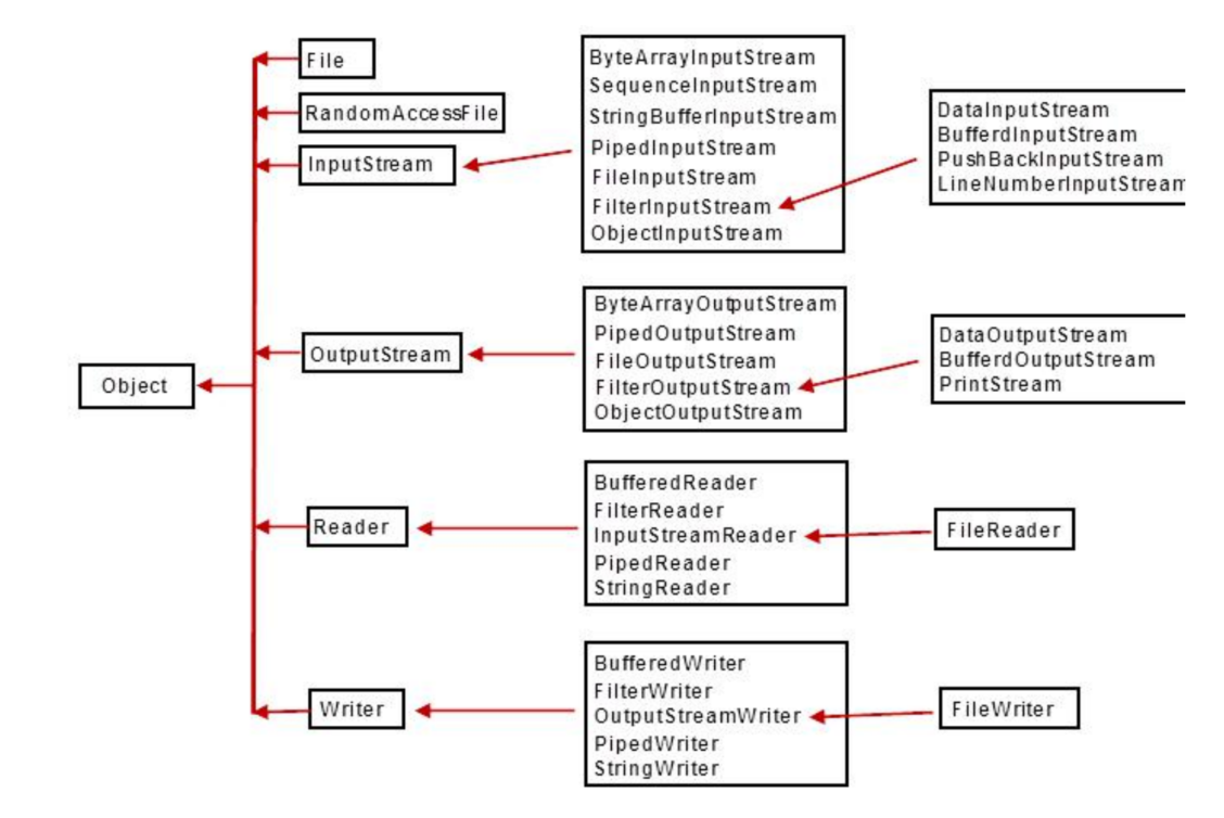 InputStream/OutputStream 和 Reader/Writer 类是所有 IO 流类的抽象父类,我们有必要 简单了解一下这个四个抽象类的作用。然后,通过它们具体的子类熟悉相关的用法。