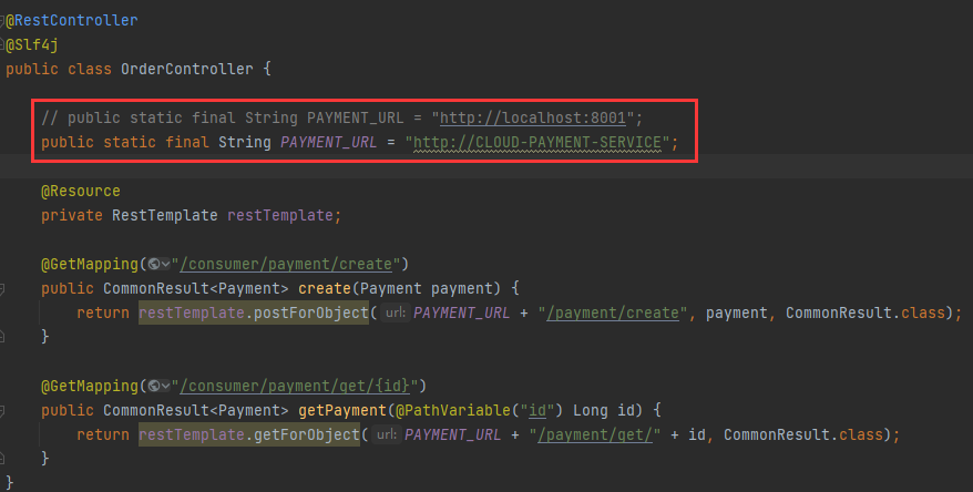 🔶 修改订单项目的OrderController ,请求的地址不能写死。