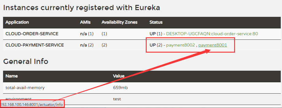 修改8001和8002的配置文件application.yml  修改完成后运行8001、8002,可在Eureka查看到实例名,鼠标悬浮时可以看到ip地址。