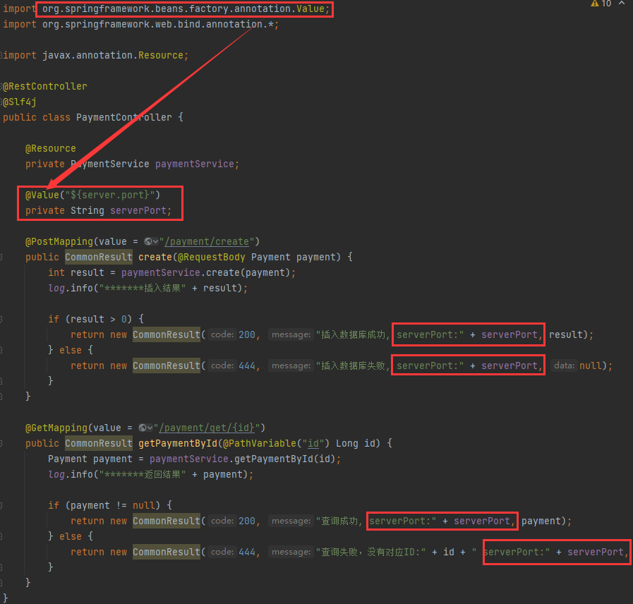 return new CommonResult(200, "插入数据库成功, serverPort:" + serverPort, result);