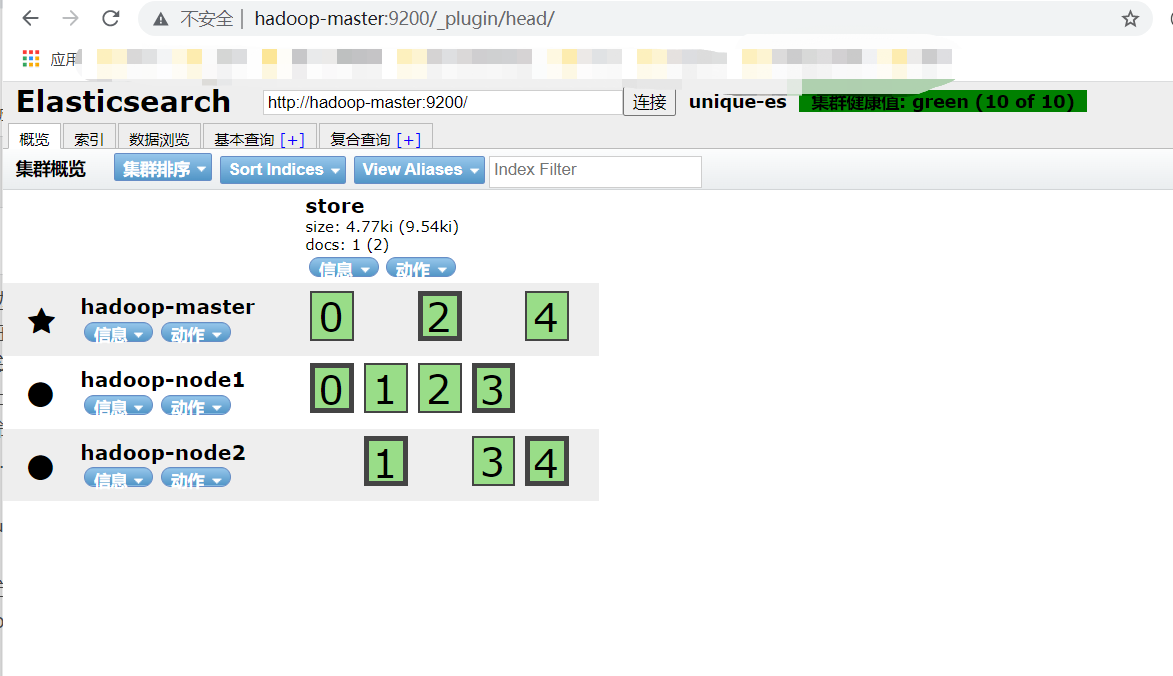 3.访问浏览器可以看到管理页面 http://hadoop-master:9200/_plugin/head