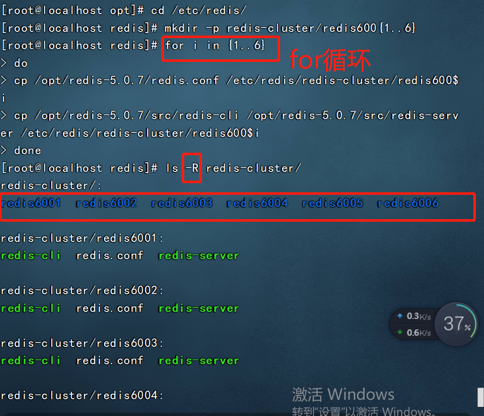 cp /opt/redis-5.0.7/src/redis-cli /opt/redis-5.0.7/src/redis-server /etc/redis/redis-cluster/redis600$i