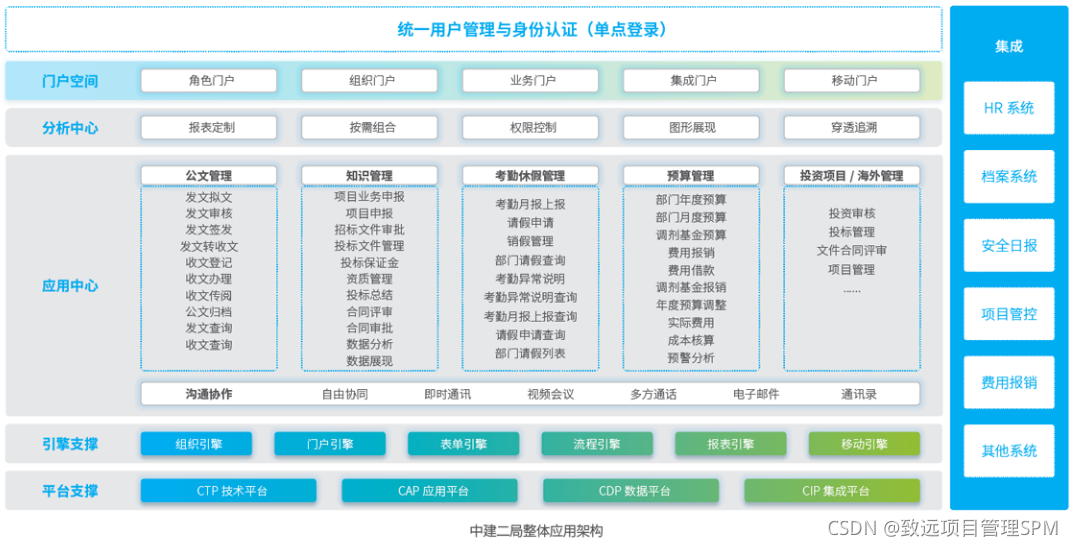 致远项目管理SPM系统,帮助中建二局打通了核心应用,缩短了企业管理半径,并采用大数据技术,将项目运作、企业管理、员工行为数据有效整合,建设了企业内部高效管理渠道,降低了经营成本,提高了企业整体效能。同时,数据的集成,知识的共享也为企业的数字化转型打开了局面。