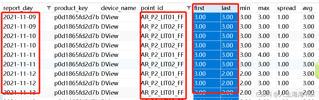 ?场景:如上图所示,需要 把同一天的不同 poind_id 的 fist、last? 聚合展示出来展示出来。
