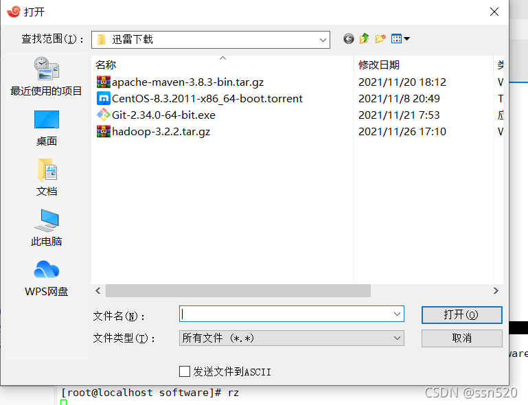[root@localhost software]# mv ~/software/hadoop-3.2.2.tar.gz /home/ssn/software/
