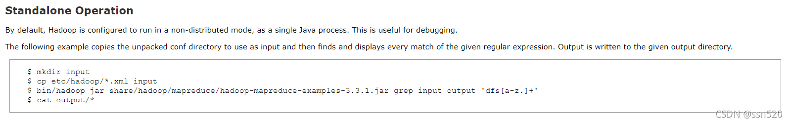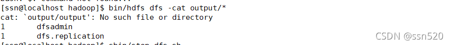 [ssn@localhost hadoop]$bin/hdfs dfs -cat output/*