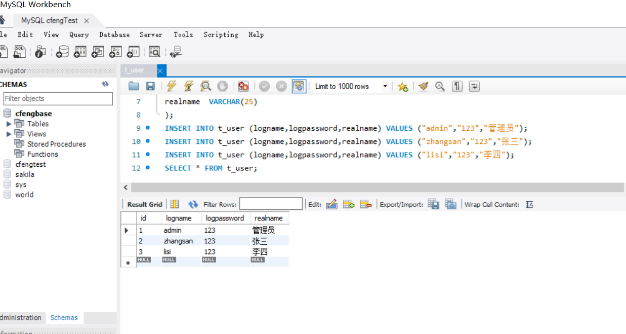 INSERT INTO t_user (logname,logpassword,realname) VALUES ("admin","123","管理员");