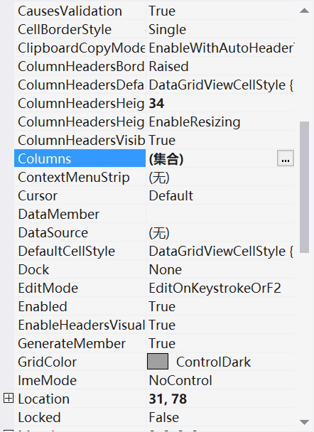 继续在DataGridView的Columns属性里设置,也可以右键单击选择编辑列。  设置Name与DataPropertyName的值保持一致即可。