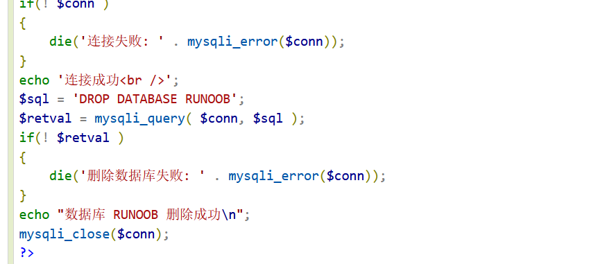 1,drop table table_name 2,使用php脚本删除数据库 mysqli_query(connection,query,resultmode); 同上