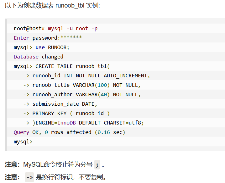 数值,日期,字符串 1, 关键字int是integer的同义词dec是decimal同义词 2,时间和日期 每个时间有效期范围和一个“零”值,当指定不合法的mysql不能表示值时,使用零值 3,字符串: char() 和varchar()括号里的不代表字节个数,代表字符个数,char(39)可以存储三十个字符 两者保存和检索方式不一样,他们的最大长度和尾部空格被保留等方面也不同,存在检索过程大小写的转换 binary和varbinary不同的是他们包含了二进制字符串而不要非二进制字符串,包含字节字符串而不是字符字符串 创建数据表(包含有表名,表字段名,定义每个表字段) create table table_name(column_name,column_type)  2,创建php脚本创建数据表 mysqli_query(connection,query,resultmode) 使用同上