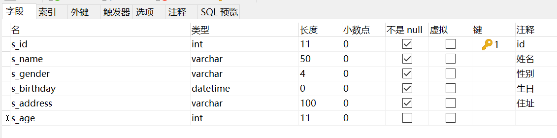 field:'s_id', //属性对应的列名,若不定义field则表中的列名(sid)就是属性名