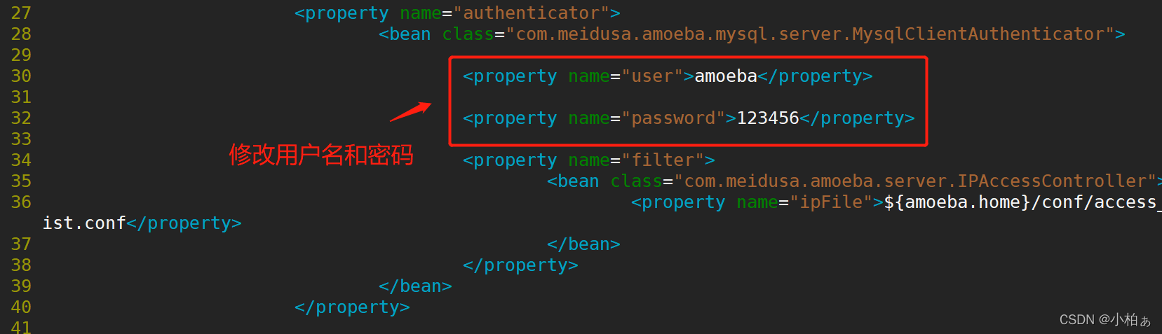 [root@localhost /usr/local/amoeba/conf]# cp amoeba.xml amoeba.xml.bak