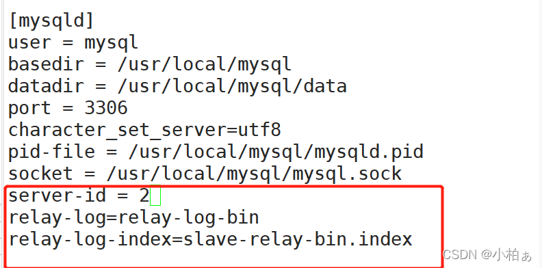 mariadb-relay-bin.00000#: 中继日志,保存从主节点复制过来的二进制日志,本质就是二进制日志