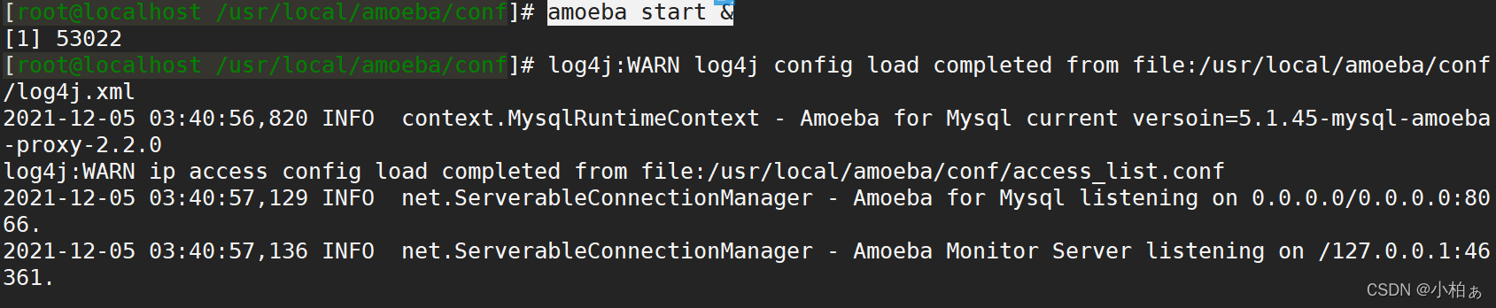 [root@localhost /usr/local/amoeba/conf]# amoeba start &