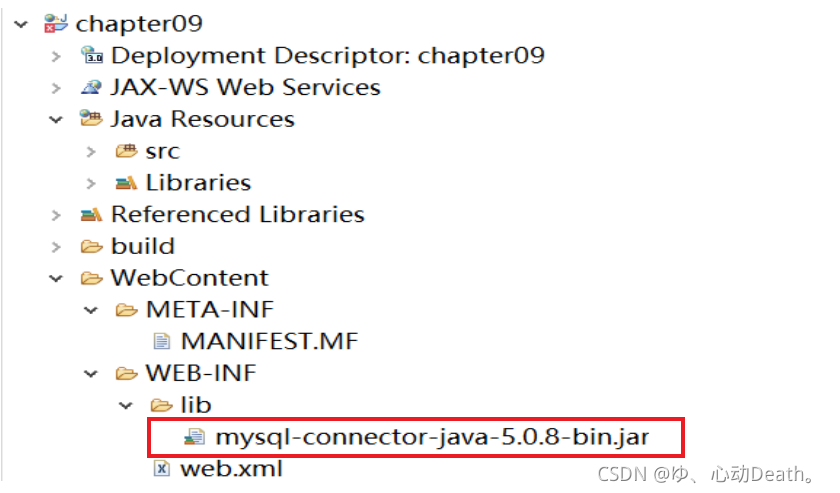? ? ? ? 访问MySQL数据库需要用到第三方的类,这些第三方的类,都被压缩在一个.Jar的文件里。mysql-connector-java-5.0.8-bin.jar包可以在网上下载,或者在MySQL的安装目录下找到。通常下载到该jar包之后将其放到在项目的lib目录下