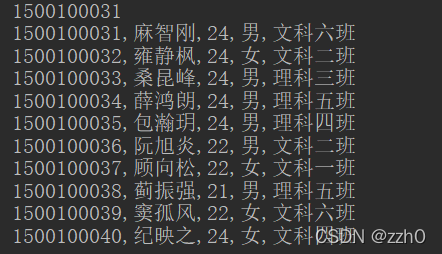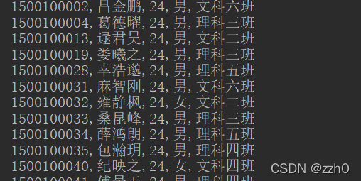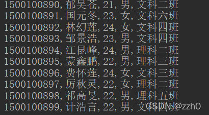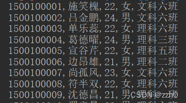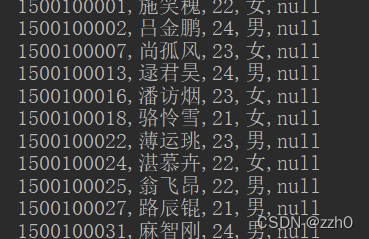 System.out.println(id + "," + name + "," + age + "," + gender + "," + clazz);