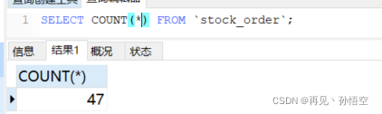 ????????继续用 jmeter 进行测试。日志中可以看到,存在大量购买失败,销售量为 47,但是订单量也为 47,说明不存在超卖的情况。