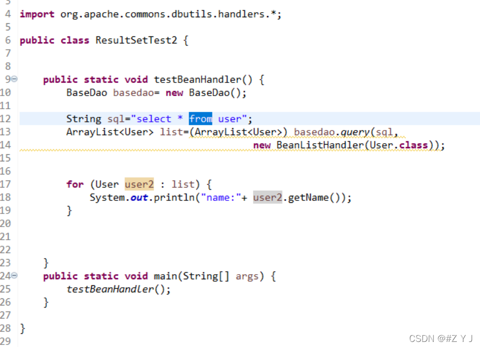 2.4 ResultSetHandler 实现类 2.3小节中介绍了ResultSetHandler 接口中常见实现类的作用。接下来,通过案例的形式,针对常见实现类的使用进行详细的讲解。