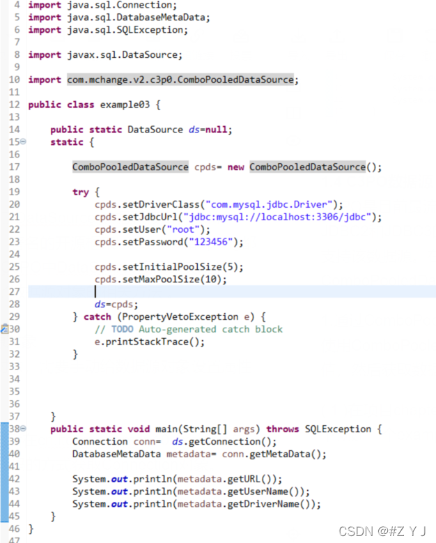 1.通过ComboPooledDataSource()构造方法创建数据源对象 使用ComboPooledDataSource()构造方法创建数据源对象,需要手动给数据源对象设置属性值,然后获取数据库连接对象,具体步骤如下。