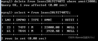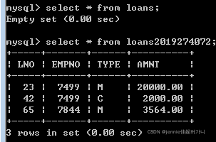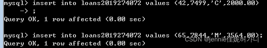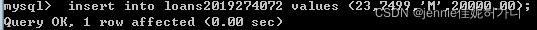 LNO???????????? EMPNO?????? TYPE?????????? AMNT ????????????? 23????????? 7499??????????????????? M?????????? 20000.00 ????????????? 42????????? 7499??????????????????? C?????????? 2000.00 ????????????? 65????????? 7844??????????????????? M?????????? 3564.00 insert into loans2019274072 values (23,7499,'M',20000.00);