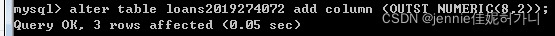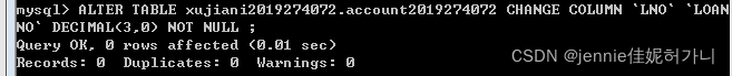 ALTER TABLE xujiani2019274072.account2019274072 CHANGE COLUMN `LNO` `LOANNO` DECIMAL(3,0) NOT NULL ;  ? ? - Create a view for use by personnel in department 30 showing employee name, number, job and hiredate.