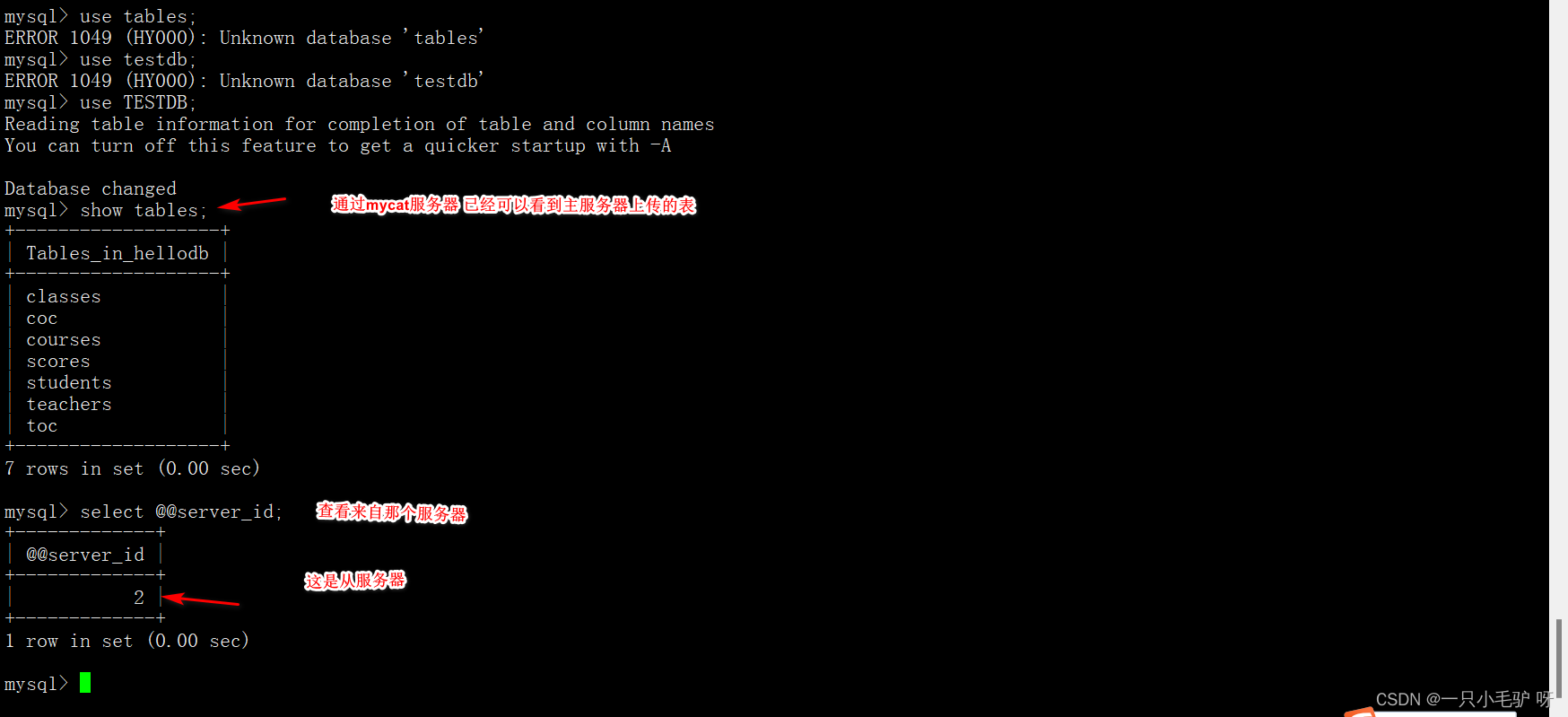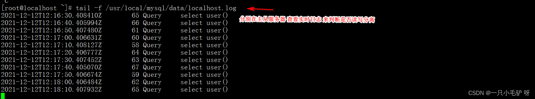 查看当前的查询来自哪台服务器,可以看到查询功能来自id为2的从服务器