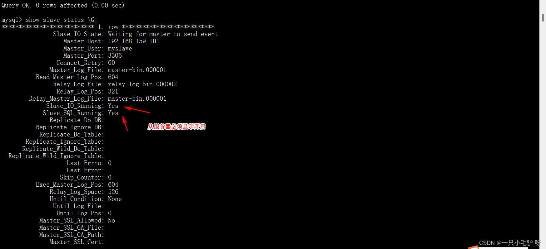#查看从库状态信息,Slave_IO_Running和Slave_SQL_Running状态必须是yes