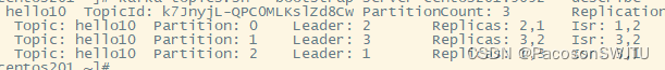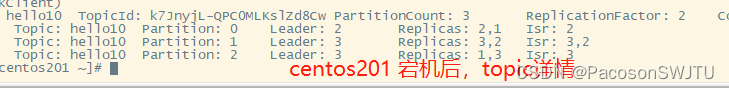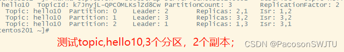 - 3个broker,分别为 centos201, centos202, centos203 ,id分别为 1,2,3 ;