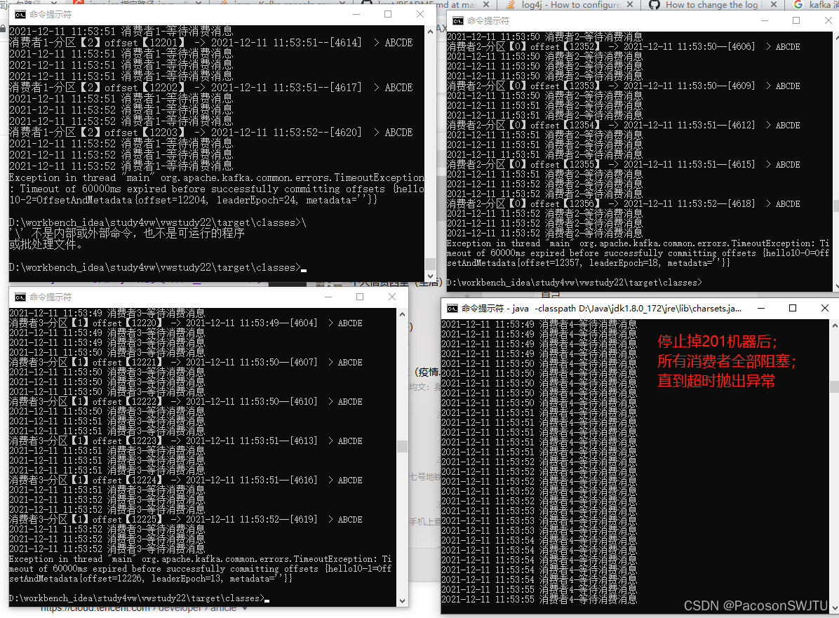 ?情况2:所有消费者全部阻塞,直到超时全部抛出异常;
