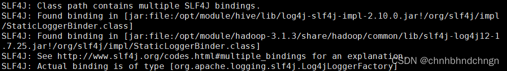 SLF4J: Found binding in [jar:file:/opt/module/hive/lib/log4j-slf4j-impl-2.10.0.jar!/org/slf4j/impl/StaticLoggerBinder.class]