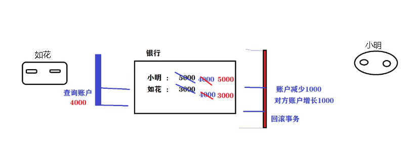 小花读取了小明未提交的新事务,然后小明回滚了,小花就读取了错误的数据(小明的事务在中间回滚了,实际上小花,小明的钱款并未改变)