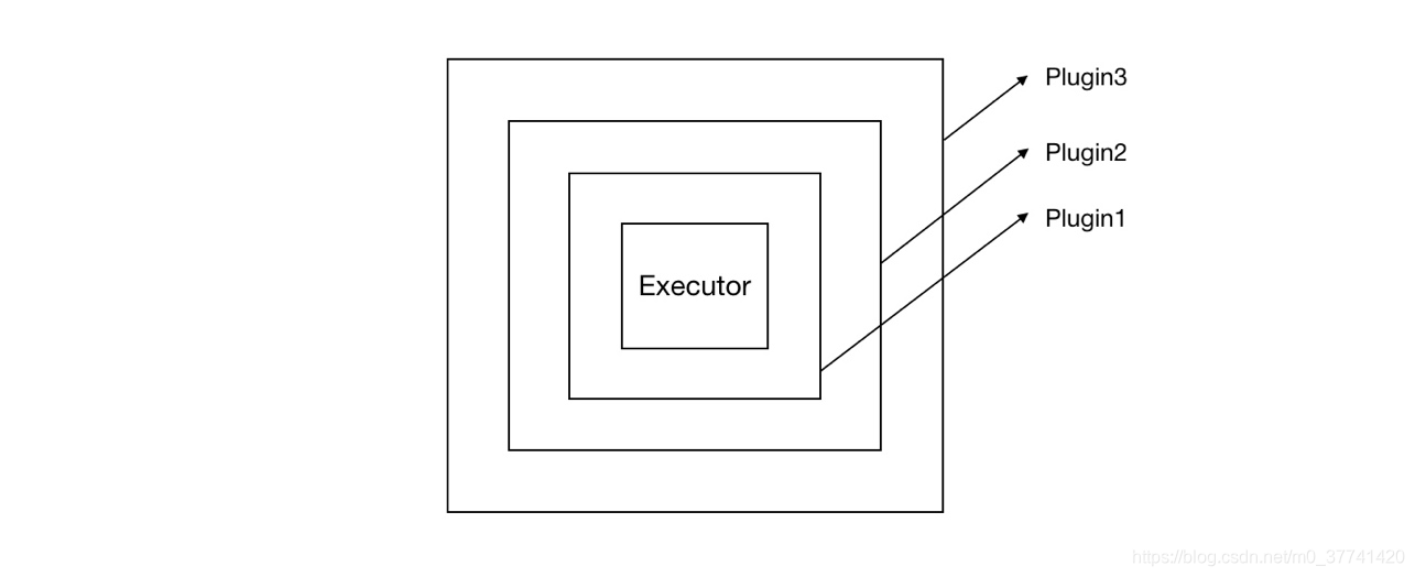 ??pluginAll 方法会调用具体插件的plugin 方法植入相应的插件逻辑。如果有多个插件,则会多次调用 plugin 方法,最终生成一个层层嵌套的代理类。形如下面:  ??当 Executor 的某个方法被调用的时候,插件逻辑会先行执行。执行顺序由外而内,比如上图的执行顺序为 plugin3 → plugin2 → Plugin1 → Executor。 ??plugin 方法是由具体的插件类实现,不过该方法代码一般比较固定,所以下面找个示例分析一下,例如ExamplePlugin: