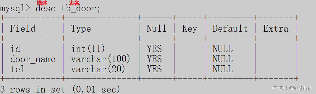 mysql> create table tb_door(