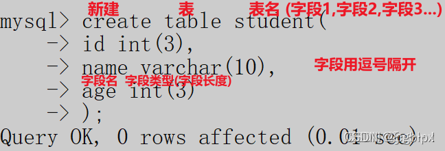 ? –2,创建 语法: create table 表名(字段名称 字段类型(字段长度),字段2,字段3)