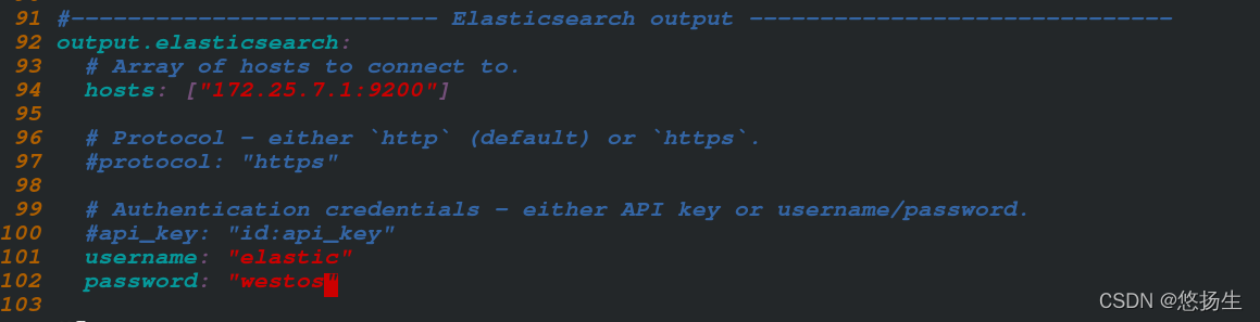 ?? ?elasticsearch { ?? ??? ?hosts => ["172.25.7.1:9200"] ?? ??? ?index => "apachelog-%{+yyyy.MM.dd}" ??????????????? user => "elastic" ??????????????? password => "westos" ?? ?} ?? ? }
