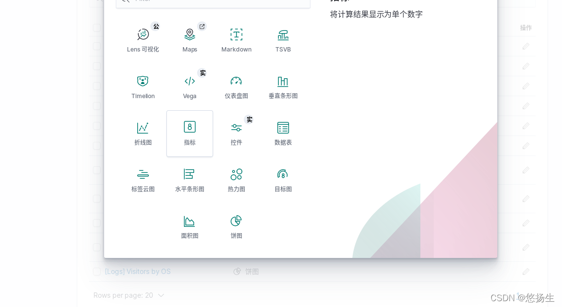 ?????? kibana 是一款开源的数据分析和可视化平台,它是 Elastic Stack 成员之一,设计用于和 Elasticsearch 协作。您可以使用 Kibana 对 Elasticsearch 索引中的数据进行搜索、查看、交互操作。您可以很方便的利用图表、表格及地图对数据进行多元化的分析和呈现。