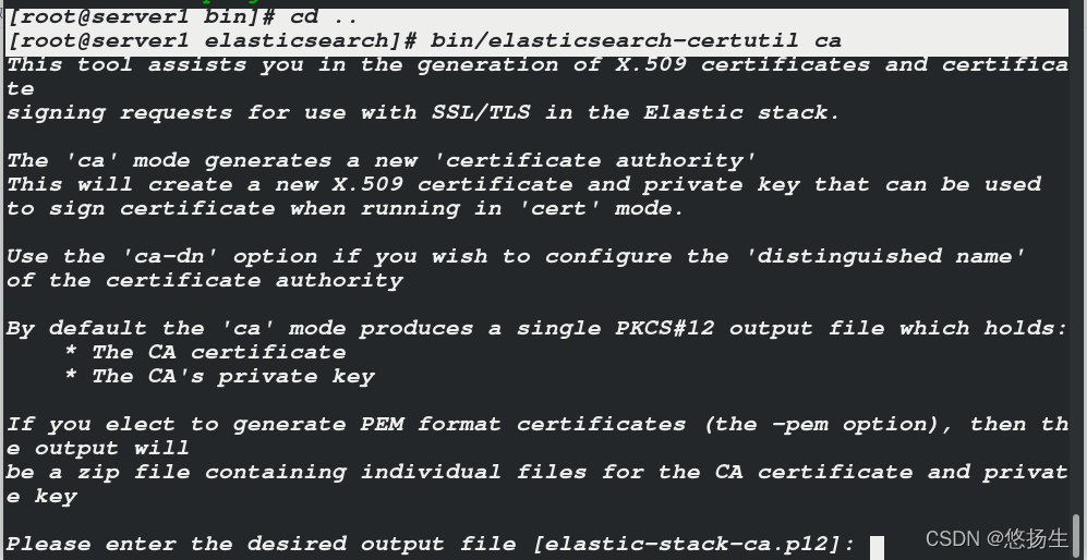 [root@server1 elasticsearch]# bin/elasticsearch-certutil ca