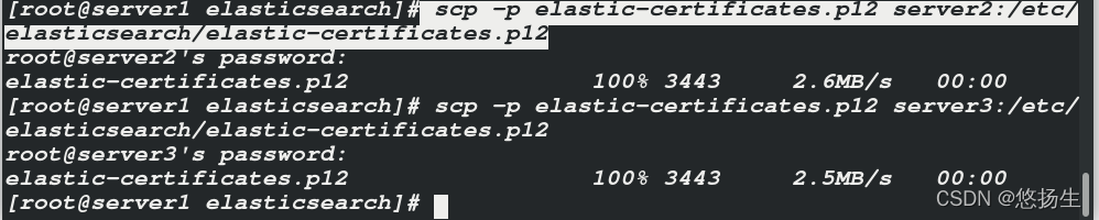 scp -p elastic-certificates.p12 server2:/etc/elasticsearch/elastic-certificates.p12