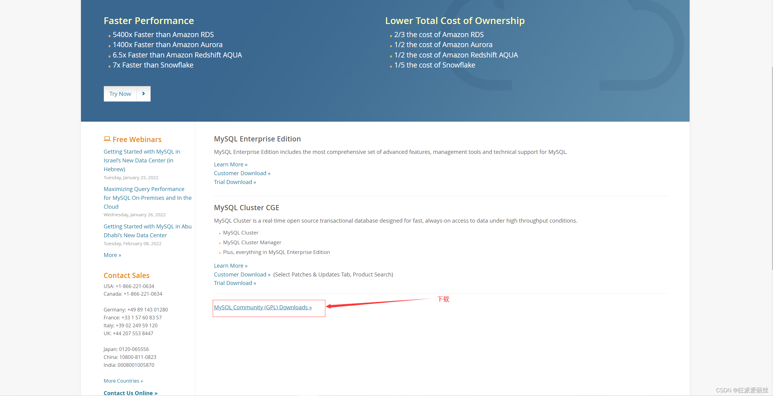 首先进入mysql的官网https://dev.mysql.com/      选择第一个 有两种安装方法