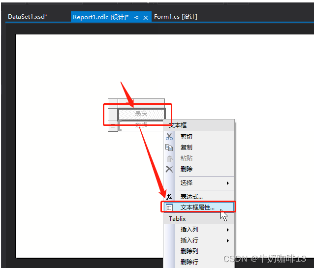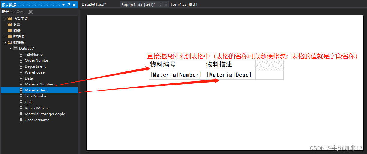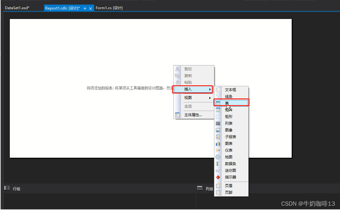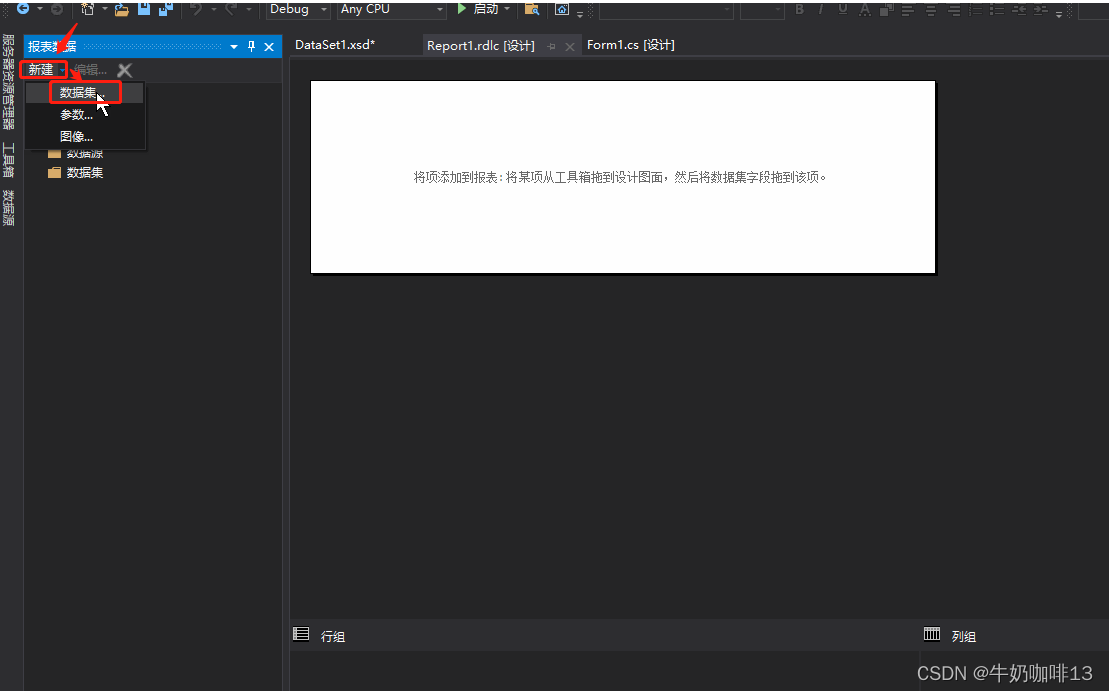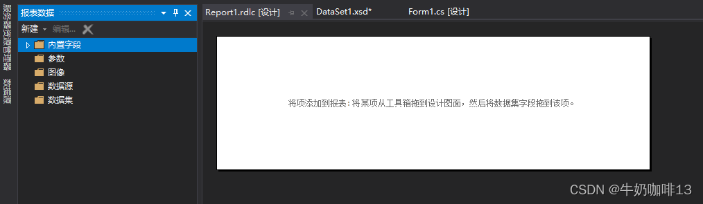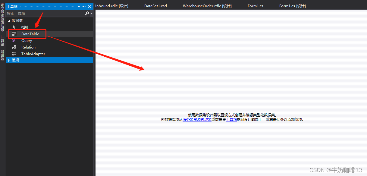 ①首先创建数据集(我这里是使用自定义DataTable数据,也可以使用数据库)