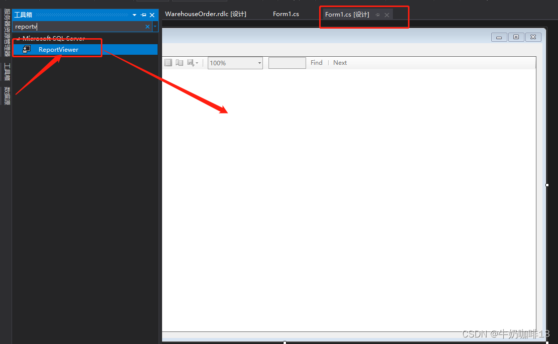 3.3.1、首先添加ReportViewer组件到窗体中?