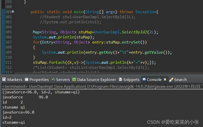 Map<String, Object> hmap=qr.query(jdbcUtil.getConn(), "SELECT * FROM sorce WHERE id=2", new MapHandler());