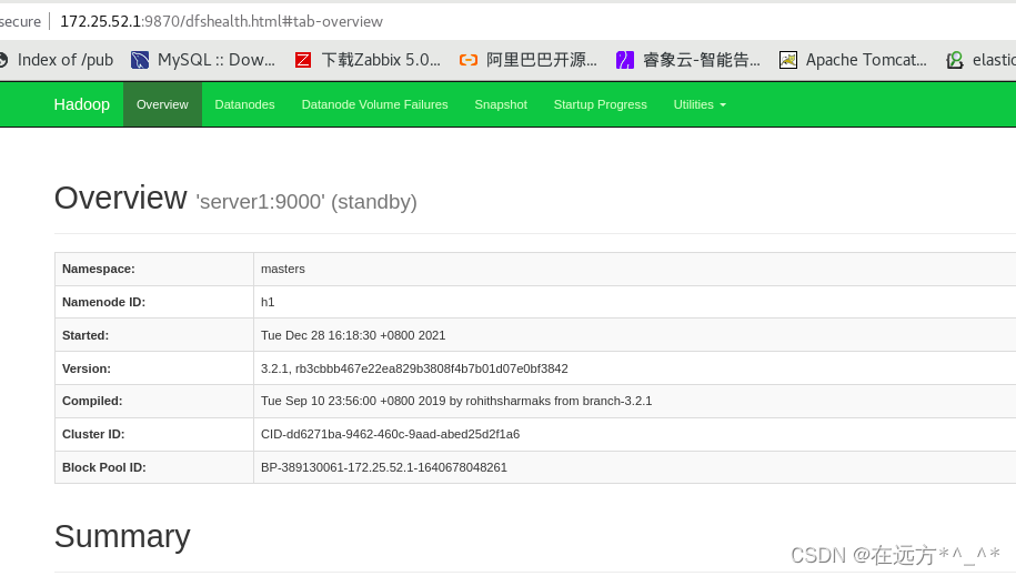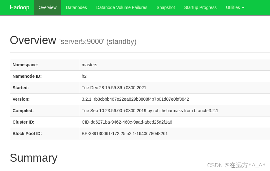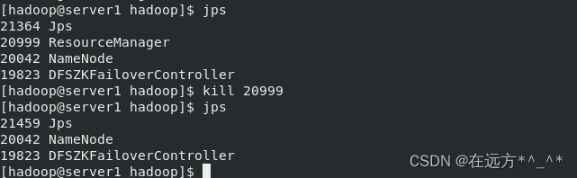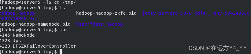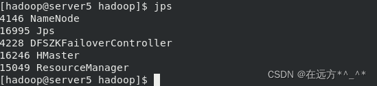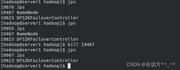 [hadoop@server1 hadoop]$ bin/hdfs --daemon start namenode [hadoop@server1 hadoop]$ jps 20550 Jps 20042 NameNode 19823 DFSZKFailoverController [hadoop@server1 hadoop]$
