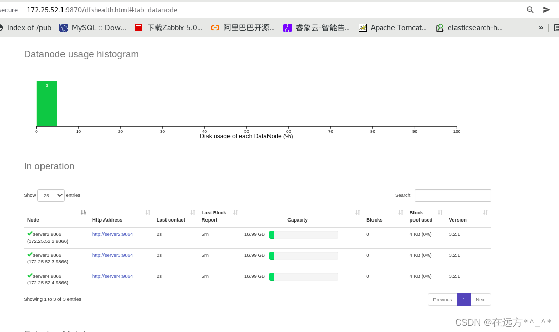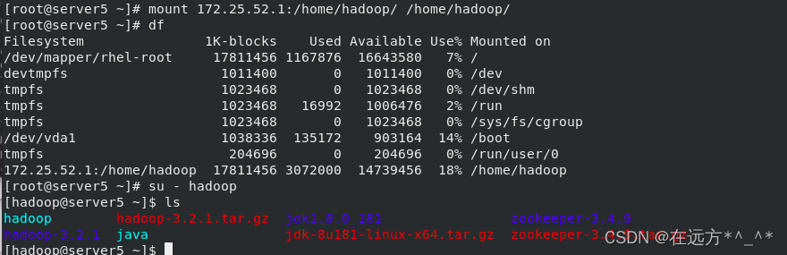 [root@server5 ~]# mount 172.25.52.1:/home/hadoop/ /home/hadoop/
