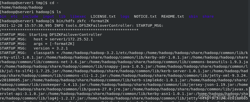 [hadoop@server1 hadoop]$ bin/hdfs zkfc -formatZK