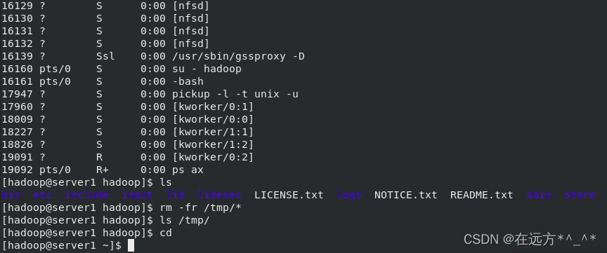 [hadoop@server2 ~]$ rm -fr /tmp/*