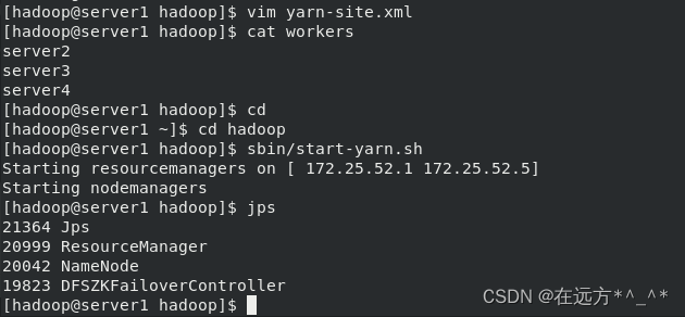 [hadoop@server1 hadoop]$ sbin/start-yarn.sh