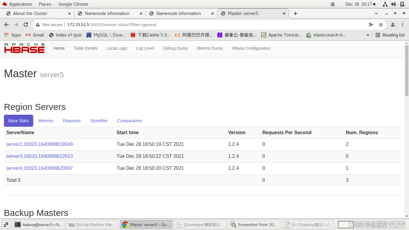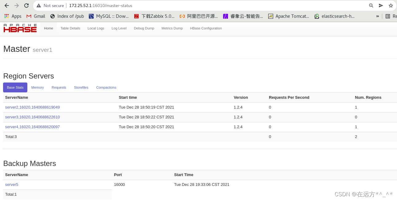 ?备节点运行: [hadoop@server5 hbase-1.2.4]$ bin/hbase-daemon.sh start master